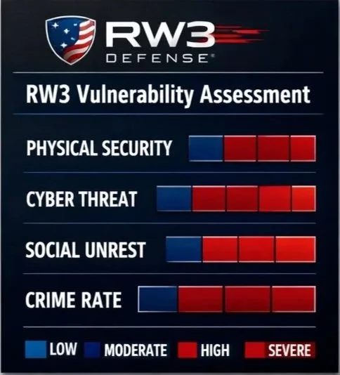 RW3 Defense assessments evaluate both environmental vulnerabilities and behavioral threat conditions.